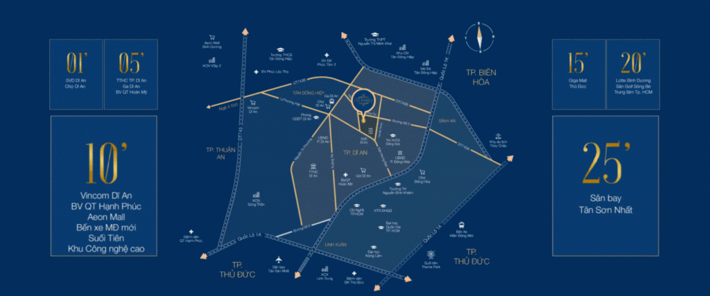 Nổi trội đó chính là Thành phố Trẻ Dĩ An với vị trí tiếp giáp trực TP. Thủ Đức, kết nối nhanh chóng với trung tâm TP Hồ Chí Minh, sân bay Tân Sơn Nhất thông qua tuyến Phạm Văn Đồng.