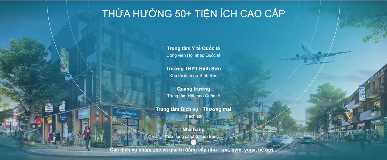 - Tiện ích Trung tâm Y tế Quốc tế, công viên Hội nhập Quốc tế, trường THPT Bình Sơn, khu tái định cư Bình Sơn, Quảng trường, trung tâm Hội thao Quốc tế, trung tâm dịch vụ - thương mại,...