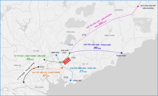 Khoảng cách từ Khu dân cư Lộc An – Long Thành tới các địa bàn, tỉnh và thành phố lân cận như sau: