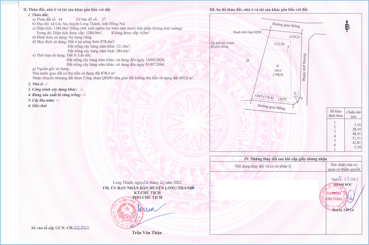 Sổ Đỏ 1 : Tờ 27 – Thửa 44