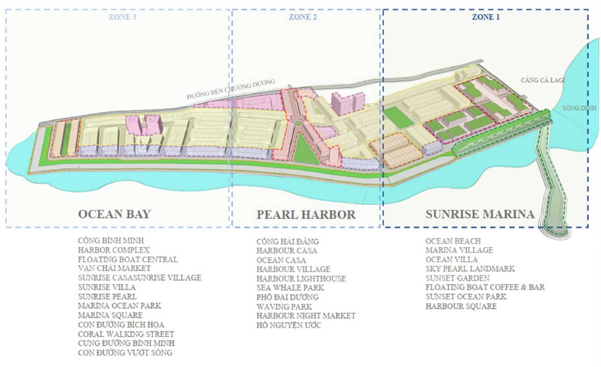 Mặt bằng phân khu Ocean Bay - Mặt bằng phân khu Pearl Harbour - Mặt bằng phân khu Sunrise Marina