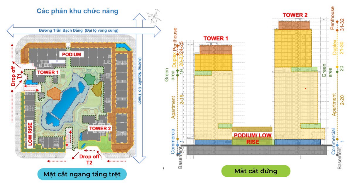 Mặt cắt layout tổng thể dự án Thủ Thiêm Zeit River