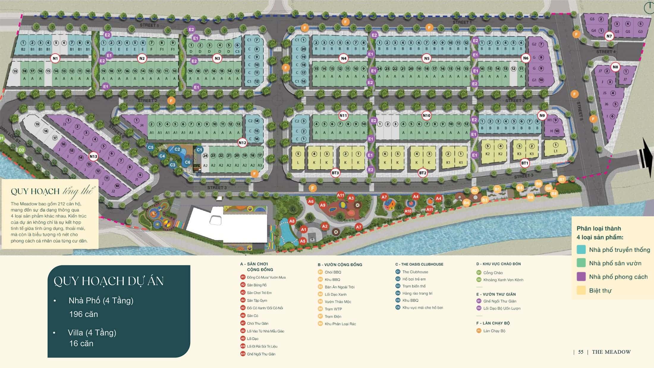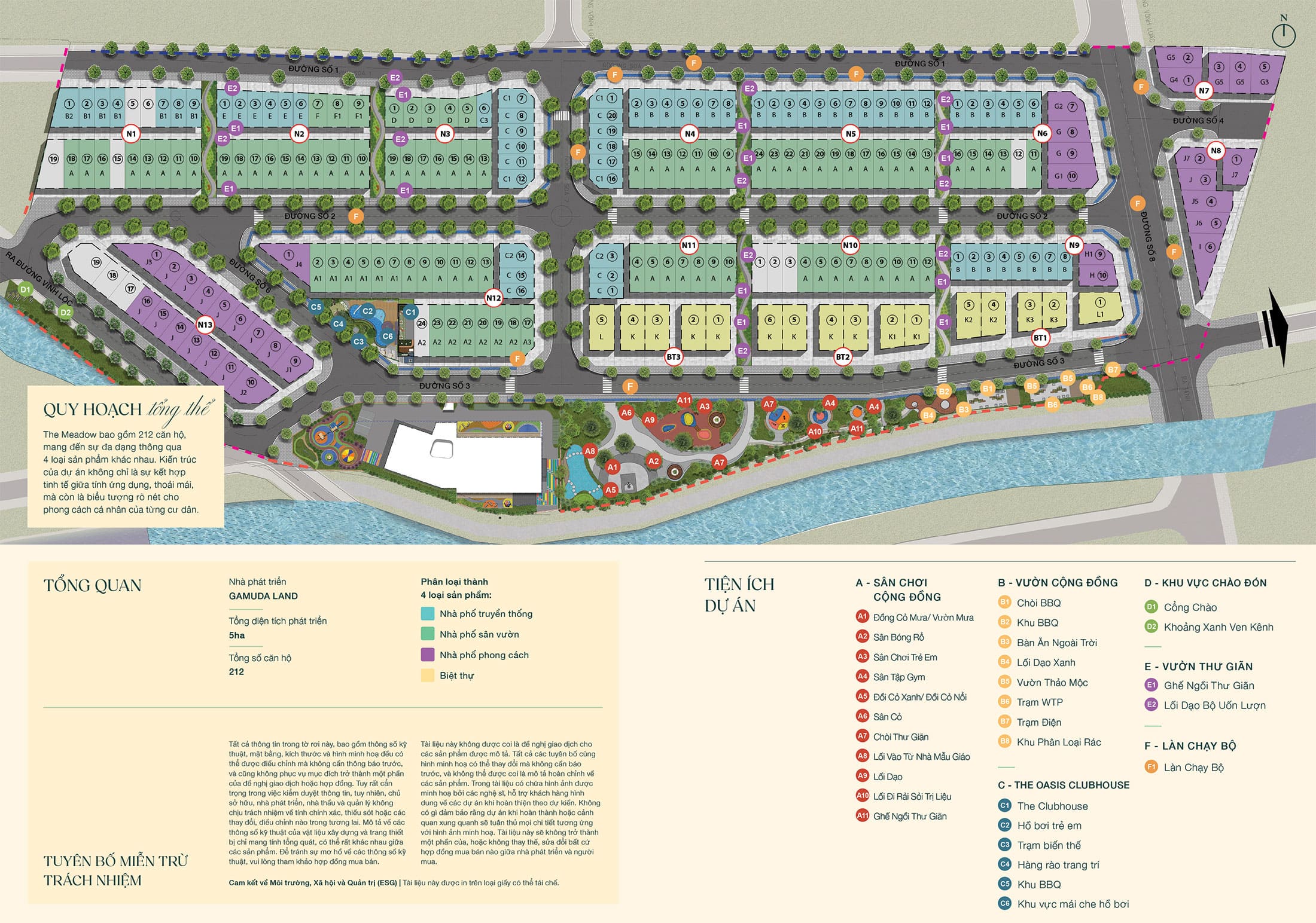 Mặt bằng tiện ích The Meadow với hệ thống tiện ích nội khu đa dạng, đáp ứng nhu cầu đa dạng của cư dân.