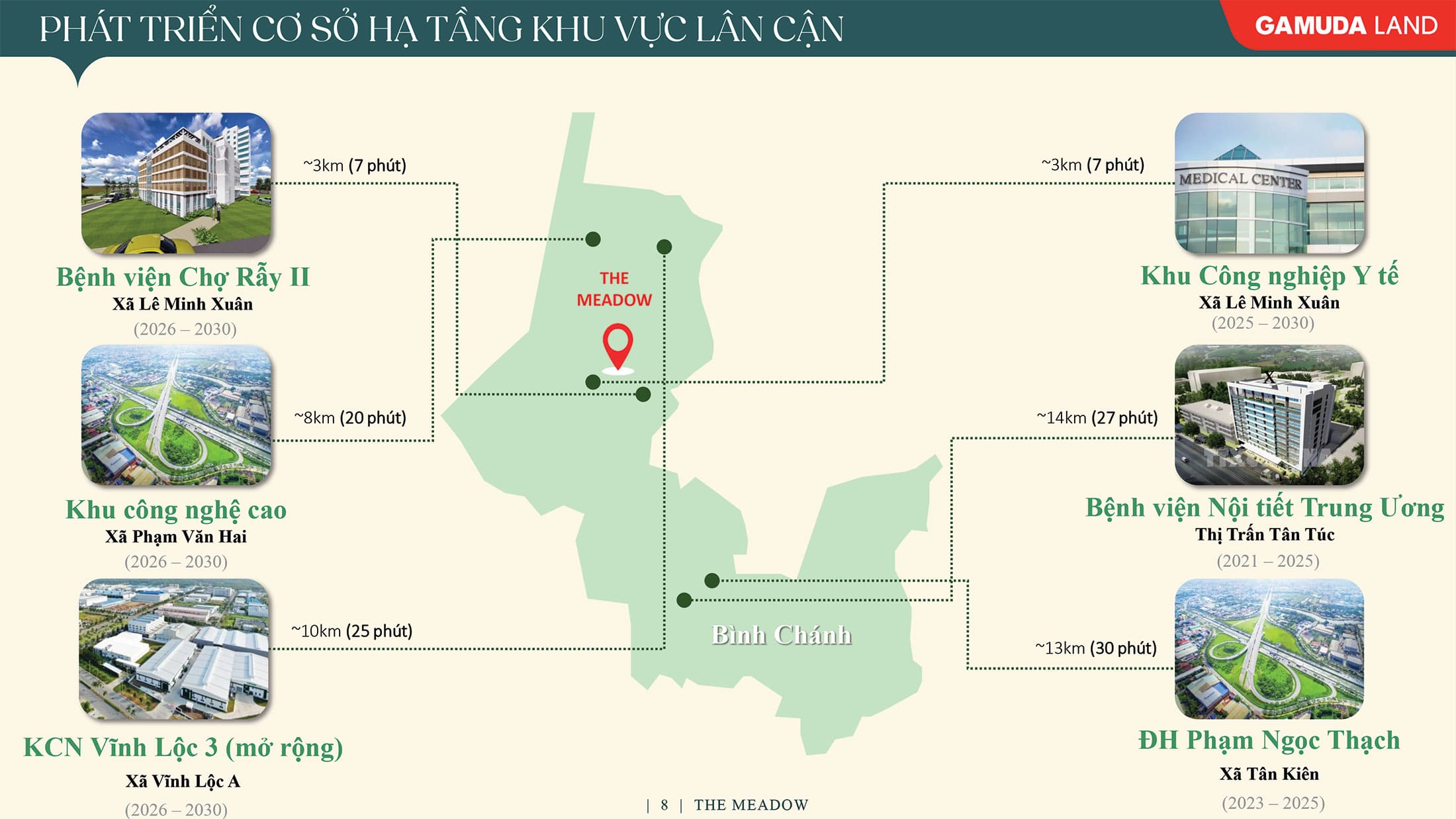 The Meadow sở hữu vị trí đắc địa tại khu vực Tây Sài Gòn, nơi đang được quy hoạch bài bản và phát triển mạnh mẽ. Tuy nhiên, nguồn cung nhà phố khép kín tại khu vực này còn khá hạn chế. Do đó, The Meadow được đánh giá là dự án tiềm năng với khả năng sinh lời cao trong tương lai.