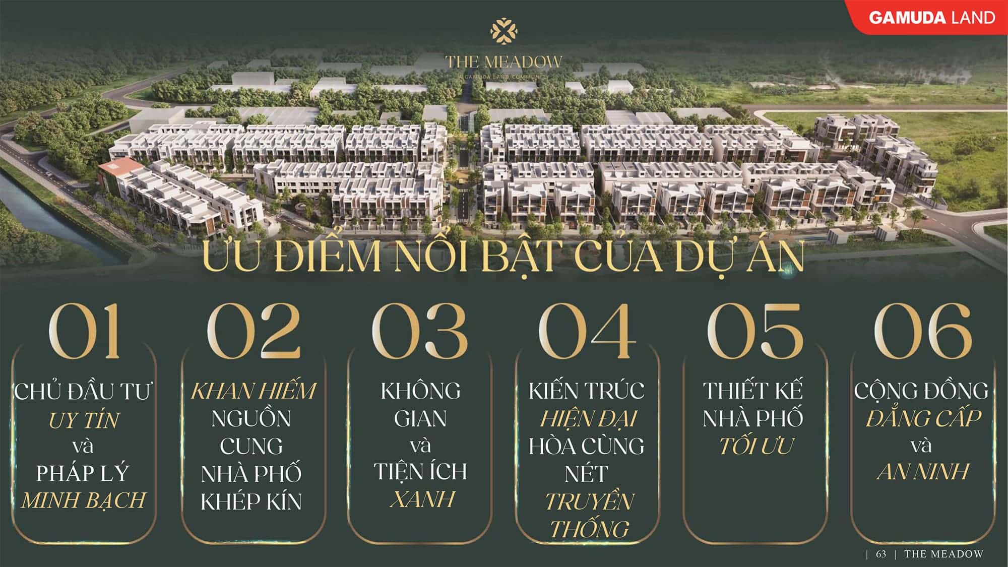 The Meadow là dự án nhà phố và biệt thự có quy mô lên đến 5ha do Tập đoàn Gamuda Land uy tín phát triển. The Meadow mang đến 212 sản phẩm nhà phố và biệt thự cao cấp, xây sẵn 3-4 lầu, hoàn thiện mặt ngoài và giao thô bên trong. Mỗi căn nhà tại The Meadow đều được thiết kế với diện tích linh hoạt, đáp ứng đa dạng nhu cầu của khách hàng.