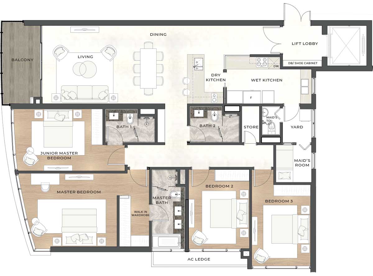 Phía sau cánh cửa Thu Thiem Zeit River, nhịp sống ồn ào sẽ khép lại để nhường chỗ cho sự tiện nghi. Mỗi bước chân của gia chủ đều chạm đến công nghệ tích hợp trải dài, nâng tầm trải nghiệm chuẩn sống thông minh.